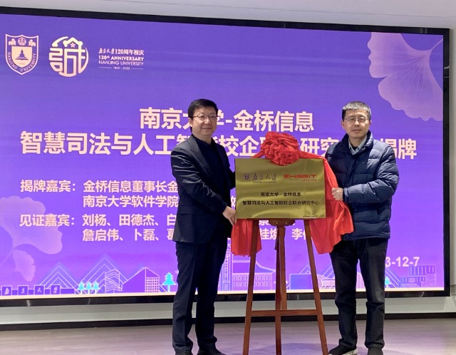 “南京大學(xué)-金橋信息聯(lián)合成立智慧司法與人工智能校企聯(lián)合研究中心揭牌儀式”在南京大學(xué)隆重舉行!